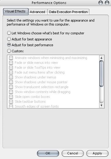 Windows XP menawarkan banyak efek multimedia yang tentu saja membebani kinerja PC. Para pemilik computer lama sebaiknya menonaktifkan fungsi tersebut.